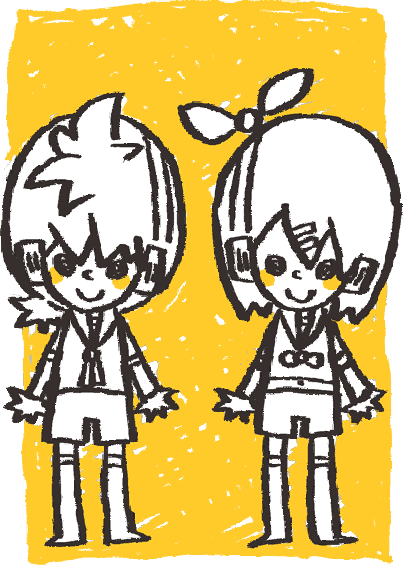 個人的には、リンレンは双子でも映し鏡でもなくて、ひとつの声から生まれた二人それ以上でもそれ以下でもない、そんな感じで考えてます。…ってああ、レンの袖を描き忘れている!